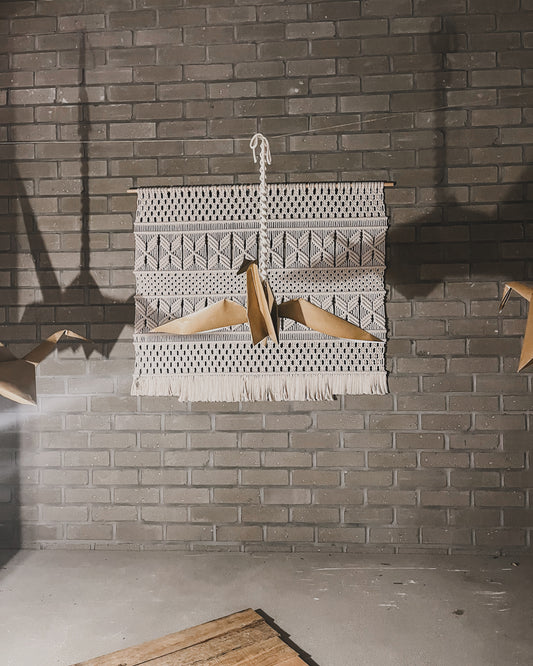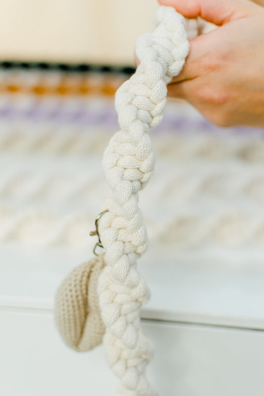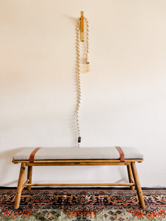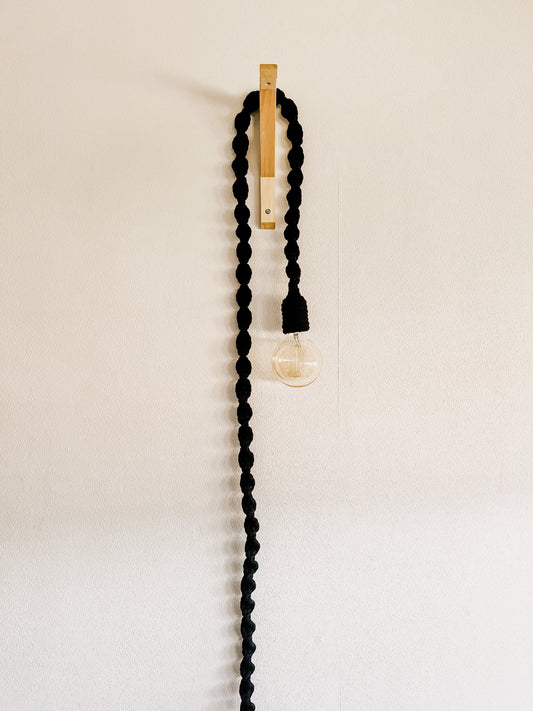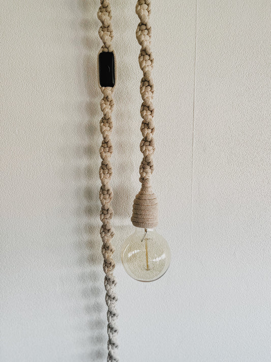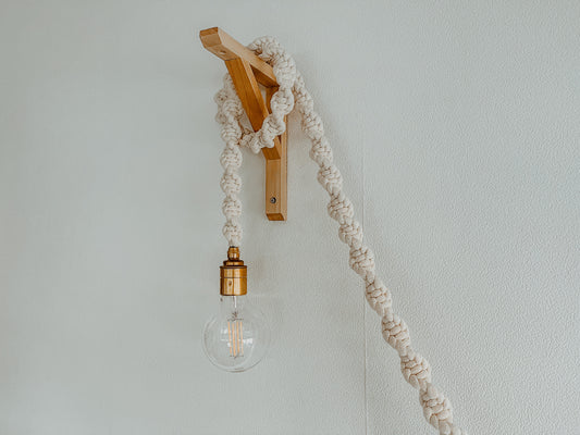COMPLETE macrame rope light with bobble light and wooden wall hook