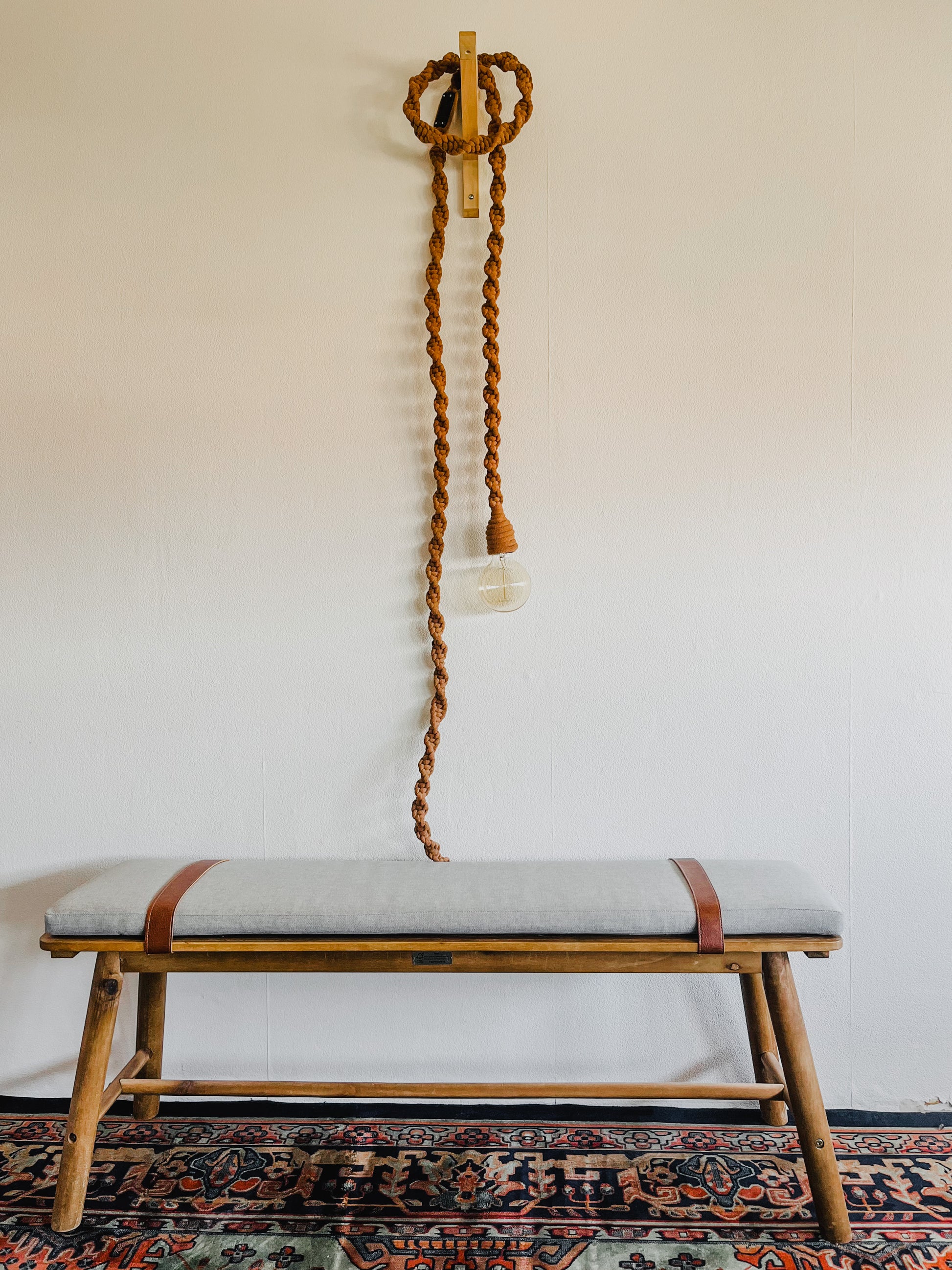 Really cool macrame rope light.* Perfect to bring some boho vibes in your room. This one is the SWEET CARAMEL rope and is made of recycled cotton yarn.
